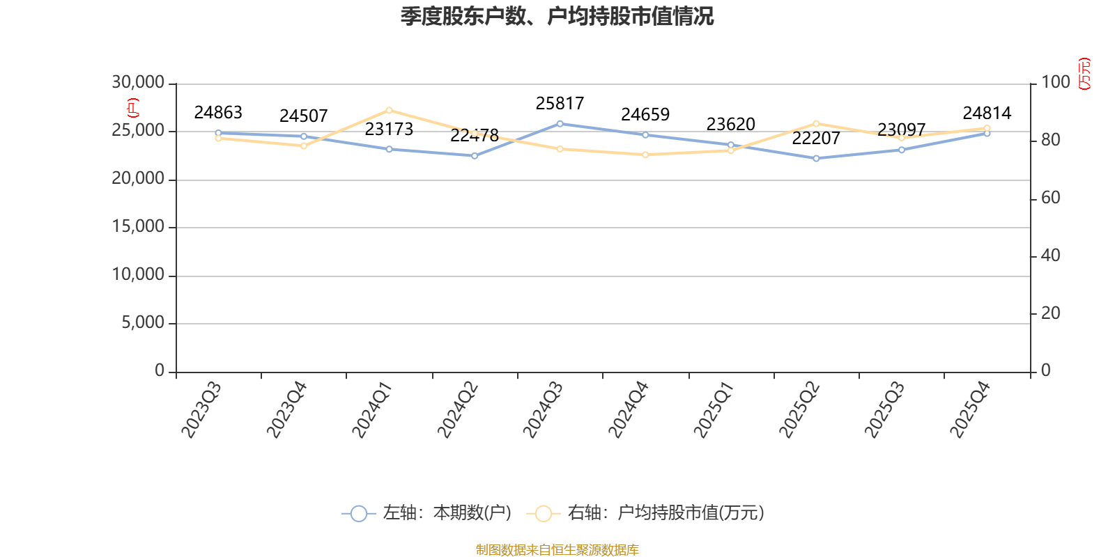 年报显示,2025年末的公司十大流通股东中,持股最多的为国新建源股权投资基金(成都)合伙企业(有限合伙),占比8.201%。在具体持股比例上,香港中央结算有限公司、中证500交易型开放式指数证券投资基金持股有所上升,国新建源股权投资基金(成都)合伙企业(有限合伙)持股有所下降。