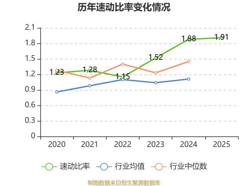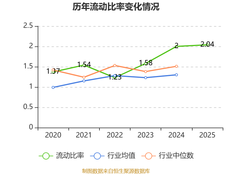 2025年,公司流动比率为2.04,速动比率为1.91。