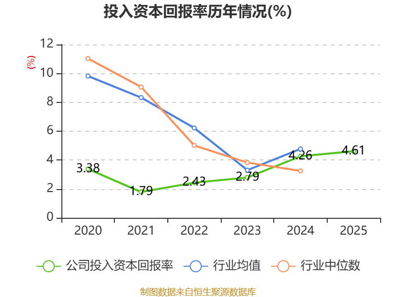 数据显示,2025年公司加权平均净资产收益率为5.78%,较上年同期上升0.15个百分点。公司2025年投入资本回报率为4.61%,较上年同期上升0.35个百分点。
