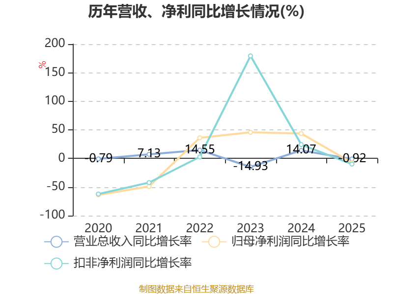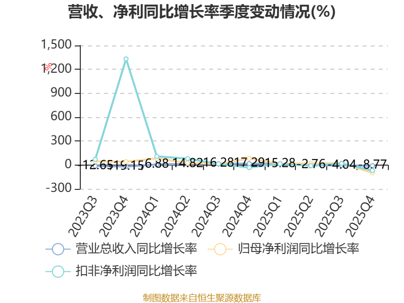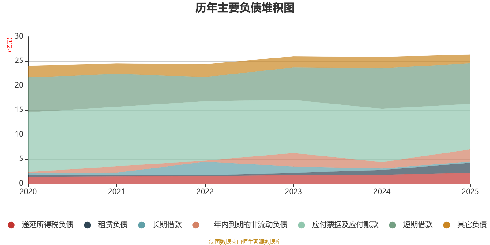 负债重大变化方面,截至2025年末,公司应付票据及应付账款较上年末减少14.75%,占公司总资产比重下降2.28个百分点;一年内到期的非流动负债较上年末增加92.54%,占公司总资产比重上升1.67个百分点;租赁负债较上年末增加111.43%,占公司总资产比重上升1.49个百分点;递延所得税负债较上年末增加22.08%,占公司总资产比重上升0.56个百分点。