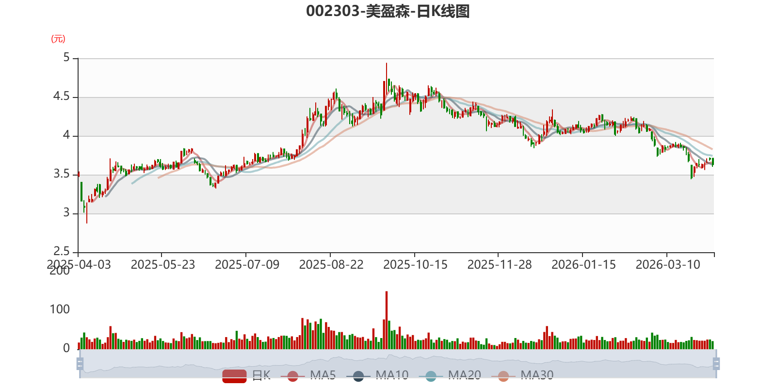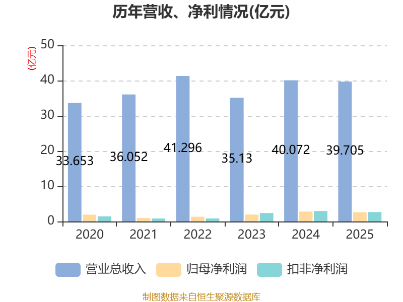 中证智能财讯美盈森(002303)4月3日披露2025年年度报告。2025年,公司实现营业总收入39.7亿元,同比下降0.92%;归母净利润2.61亿元,同比下降7.34%;扣非净利润2.69亿元,同比下降9.85%;经营活动产生的现金流量净额为3.71亿元,同比下降14.76%;报告期内,美盈森基本每股收益为0.1704元,加权平均净资产收益率为5.78%。公司2025年度分配预案为:拟向全体股东每10股派现0.8元(含税)。