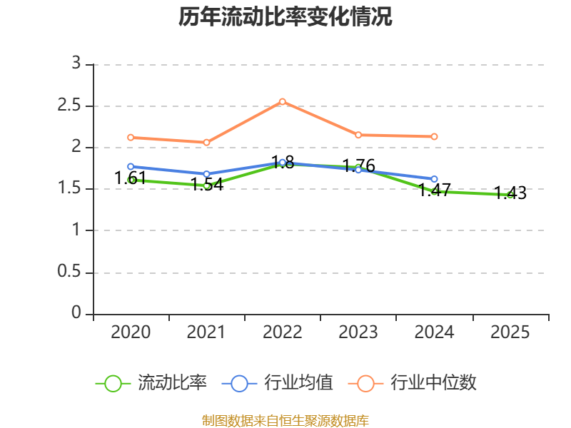 2025年,公司流动比率为1.43,速动比率为1.26。