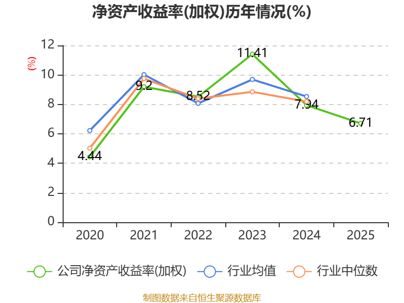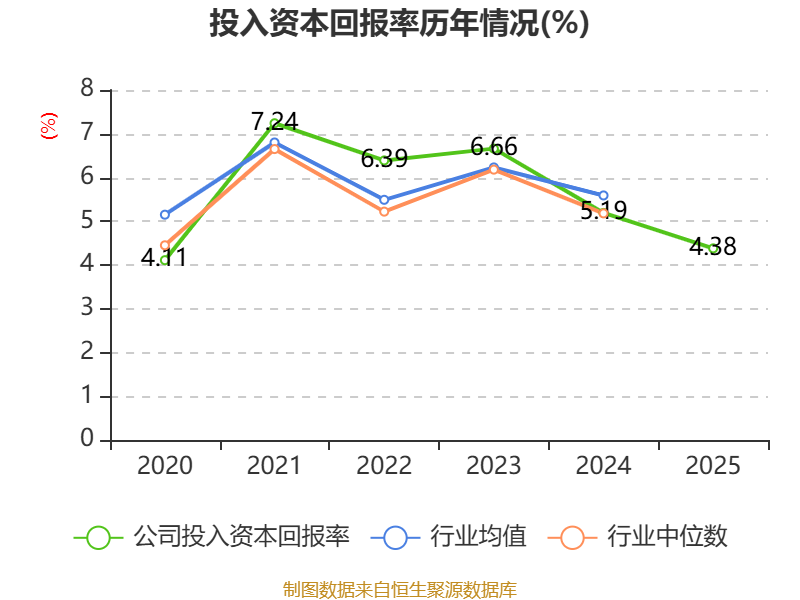 数据显示,2025年公司加权平均净资产收益率为6.71%,较上年同期下降1.23个百分点。公司2025年投入资本回报率为4.38%,较上年同期下降0.81个百分点。