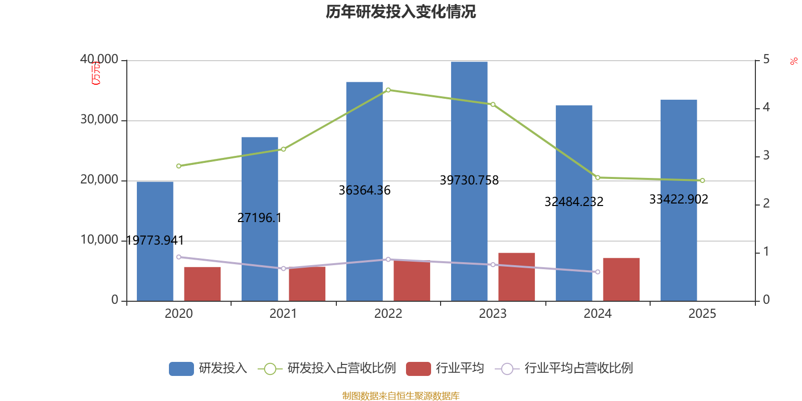 2025年全年,公司研发投入金额为3.34亿元,同比增长2.89%;研发投入占营业收入比例为2.5%,相比上年同期下降0.06个百分点。此外,公司全年研发投入资本化率为5.06%。