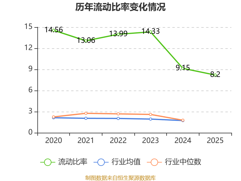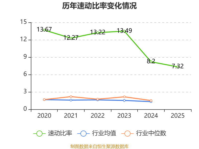 2025年,公司流动比率为8.2,速动比率为7.32。