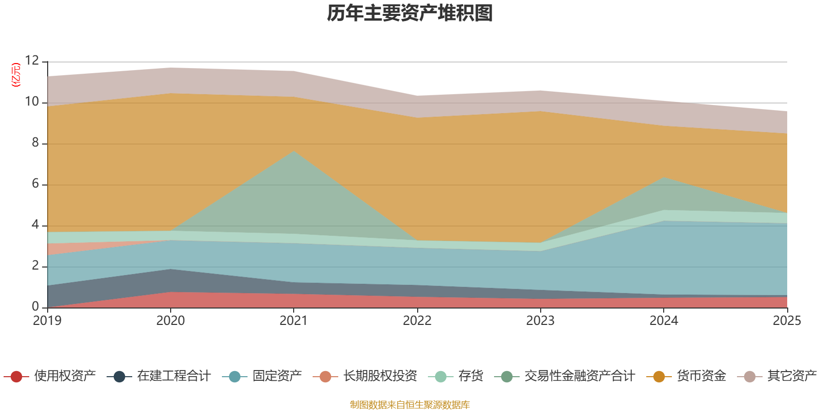 资产重大变化方面,截至2025年末,公司交易性金融资产合计较上年末减少100%,占公司总资产比重下降15.89个百分点;货币资金较上年末增加54.55%,占公司总资产比重上升15.6个百分点;固定资产较上年末减少2.47%,占公司总资产比重上升0.95个百分点;其他流动资产较上年末减少63.69%,占公司总资产比重下降0.89个百分点。