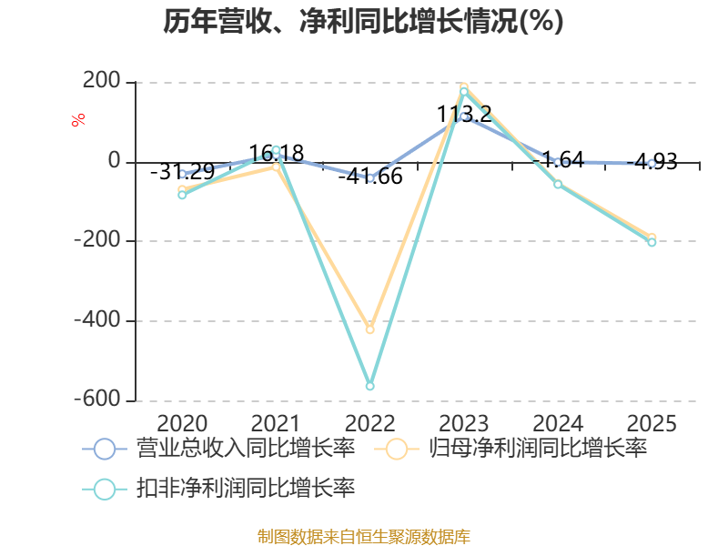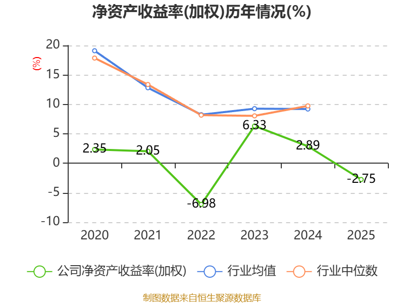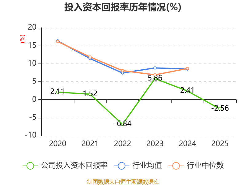 数据显示,2025年公司加权平均净资产收益率为-2.75%,较上年同期下降5.64个百分点。公司2025年投入资本回报率为-2.56%,较上年同期下降4.97个百分点。
