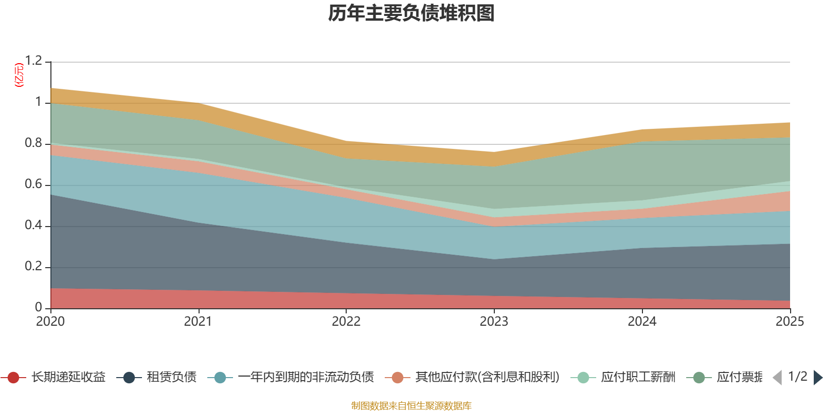 负债重大变化方面,截至2025年末,公司应付票据及应付账款较上年末减少25.72%,占公司总资产比重下降0.62个百分点;其他应付款(含利息和股利)较上年末增加115.49%,占公司总资产比重上升0.57个百分点;租赁负债较上年末增加13.12%,占公司总资产比重上升0.46个百分点;一年内到期的非流动负债较上年末增加9.21%,占公司总资产比重上升0.22个百分点。