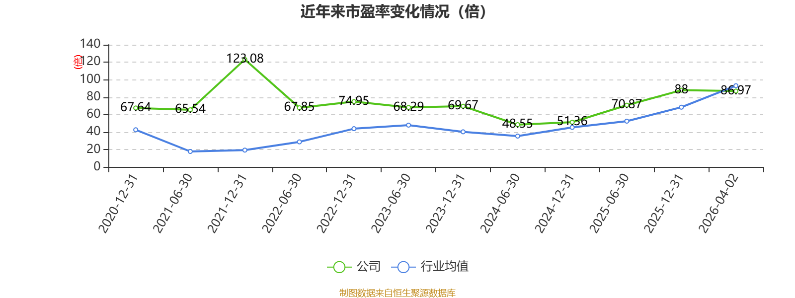 以4月2日收盘价计算,宝色股份目前市盈率(TTM)约为86.97倍,市净率(LF)约3.14倍,市销率(TTM)约3.4倍。