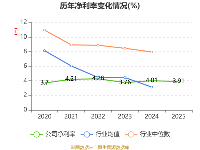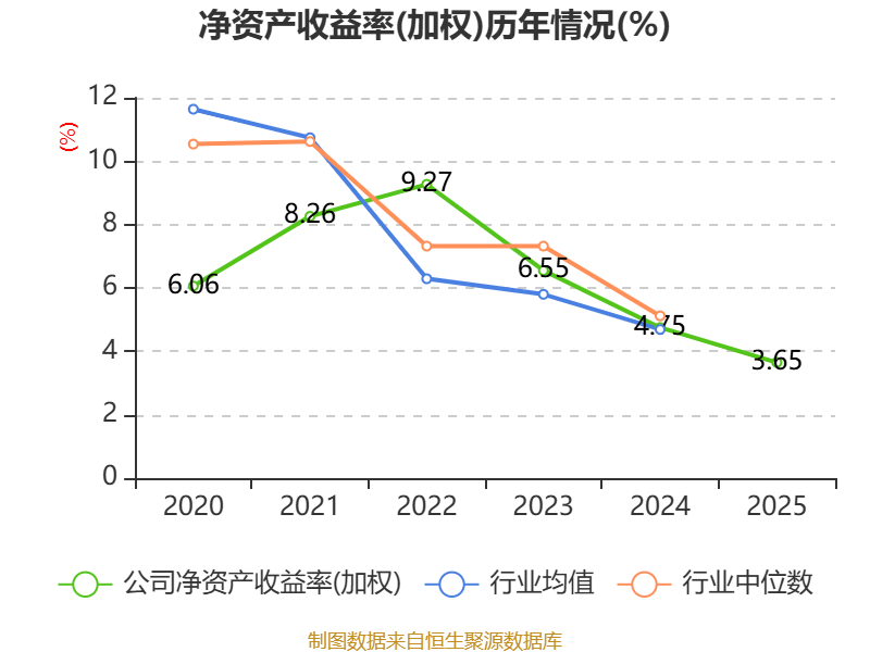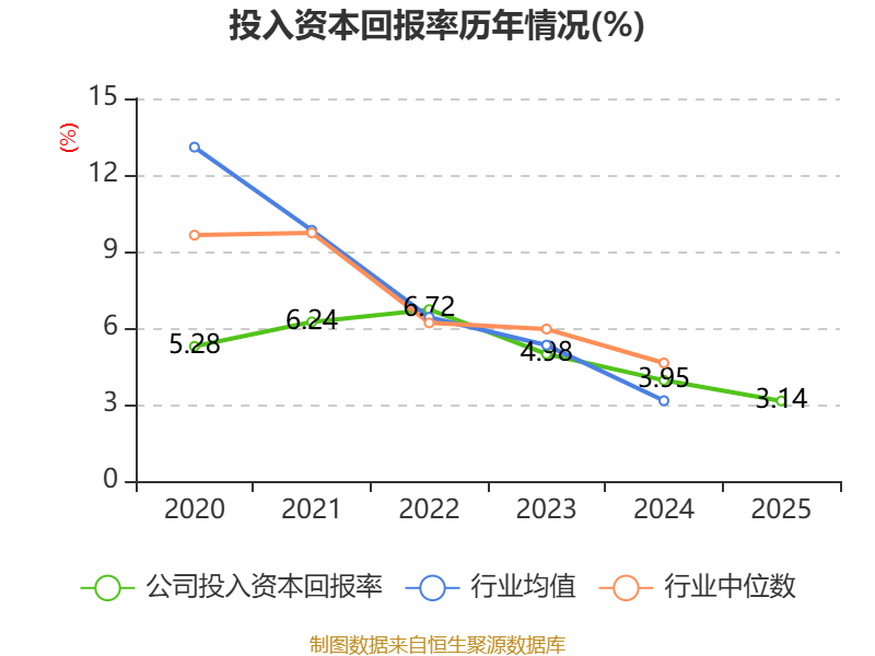 数据显示,2025年公司加权平均净资产收益率为3.65%,较上年同期下降1.1个百分点。公司2025年投入资本回报率为3.14%,较上年同期下降0.81个百分点。
