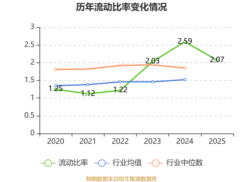 2025年,公司流动比率为2.07,速动比率为1.73。