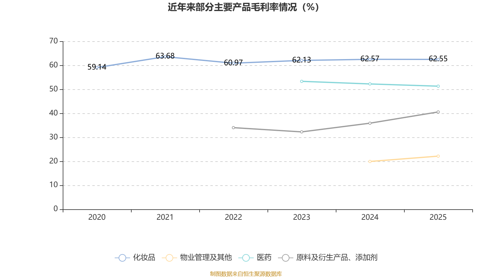 资料显示,公司主要业务涵盖化妆品、医药、原料及添加剂等业务板块,另外,还涉及物业管理等领域。