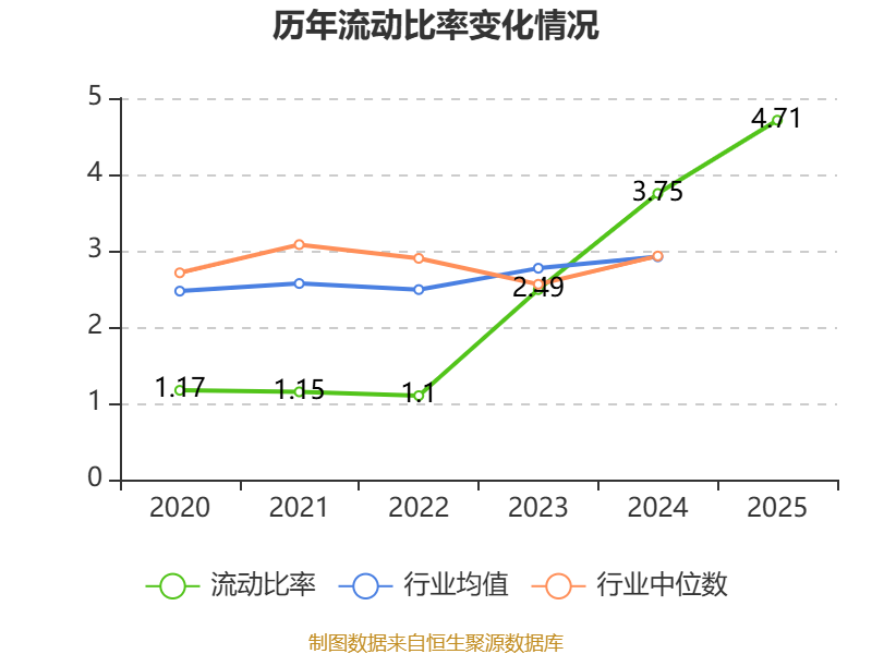 2025年,公司流动比率为4.71,速动比率为4.19。