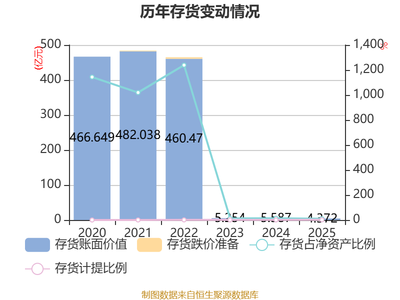 从存货变动来看,截至2025年末,公司存货账面价值为4.37亿元,占净资产的10.33%,较上年末减少1.22亿元。其中,存货跌价准备为744.76万元,计提比例为1.68%。