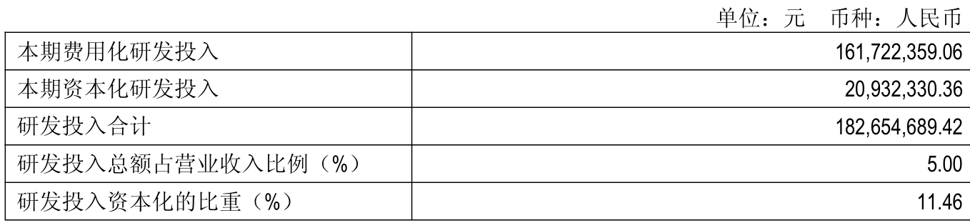 2025年全年,公司研发投入金额为1.83亿元,同比下降8.09%;研发投入占营业收入比例为5%,相比上年同期上升0.01个百分点。此外,公司全年研发投入资本化率为11.46%。