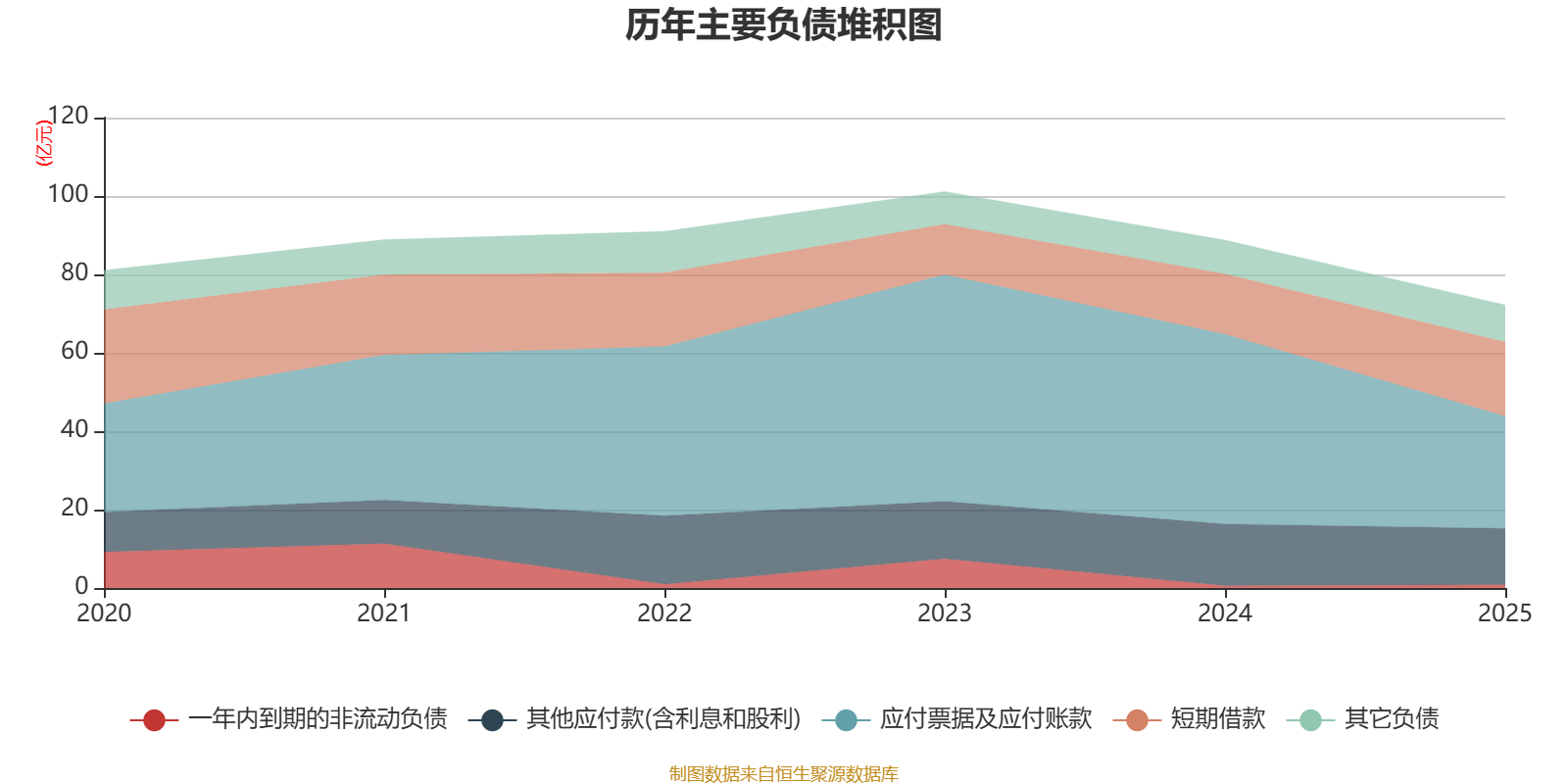 负债重大变化方面,截至2025年末,公司应付票据及应付账款较上年末减少40.87%,占公司总资产比重下降11.3个百分点;短期借款较上年末增加22.67%,占公司总资产比重上升4个百分点;长期借款占公司总资产的1.2%,上年末为0;其他流动负债较上年末增加930.22%,占公司总资产比重上升0.77个百分点。
