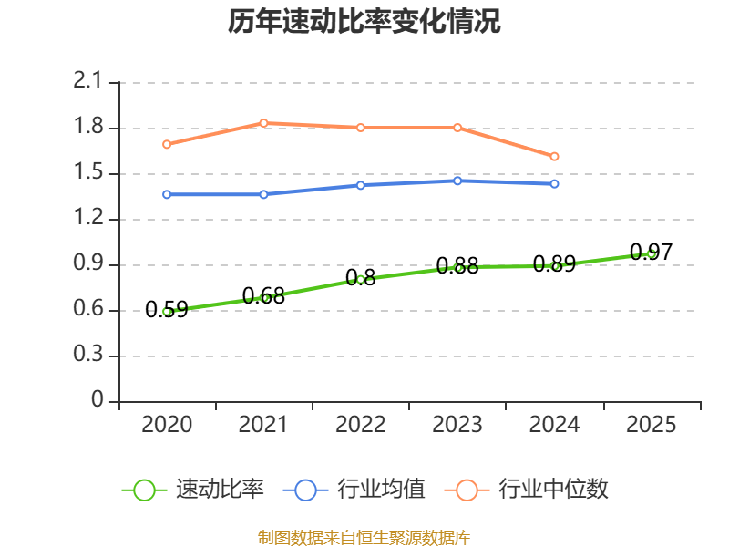 2025年,公司流动比率为1.15,速动比率为0.97。