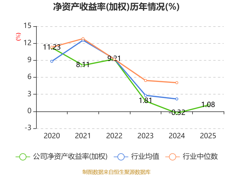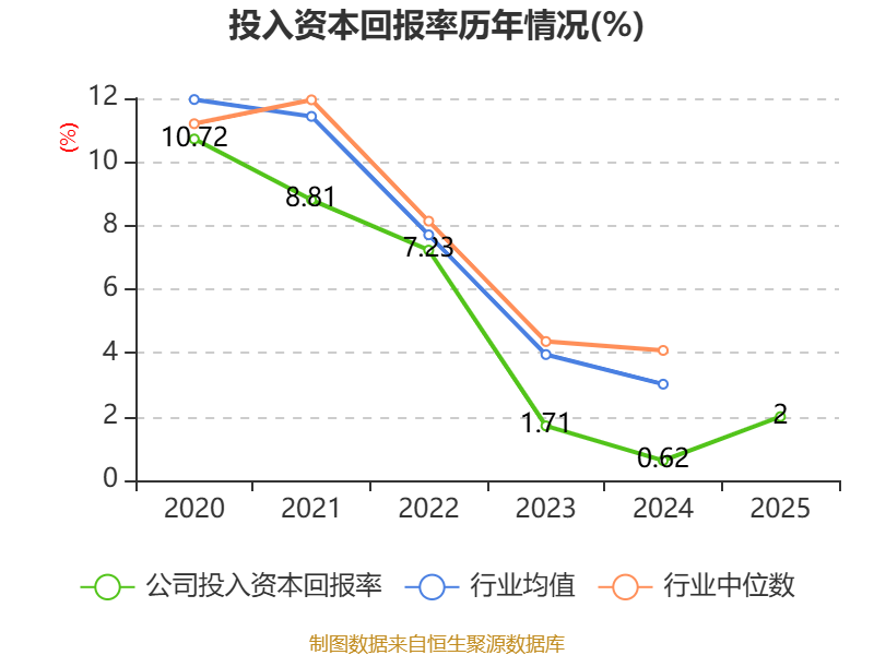数据显示,2025年公司加权平均净资产收益率为1.08%,较上年同期上升1.4个百分点。公司2025年投入资本回报率为2%,较上年同期上升1.38个百分点。