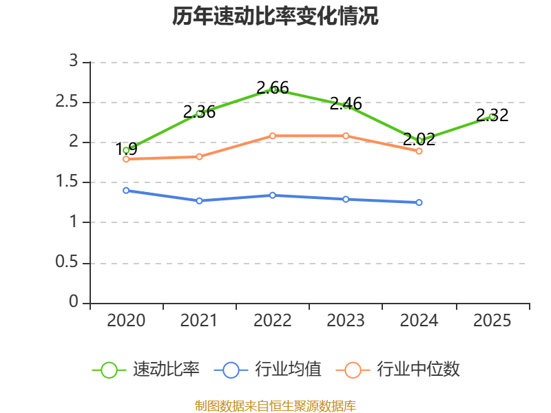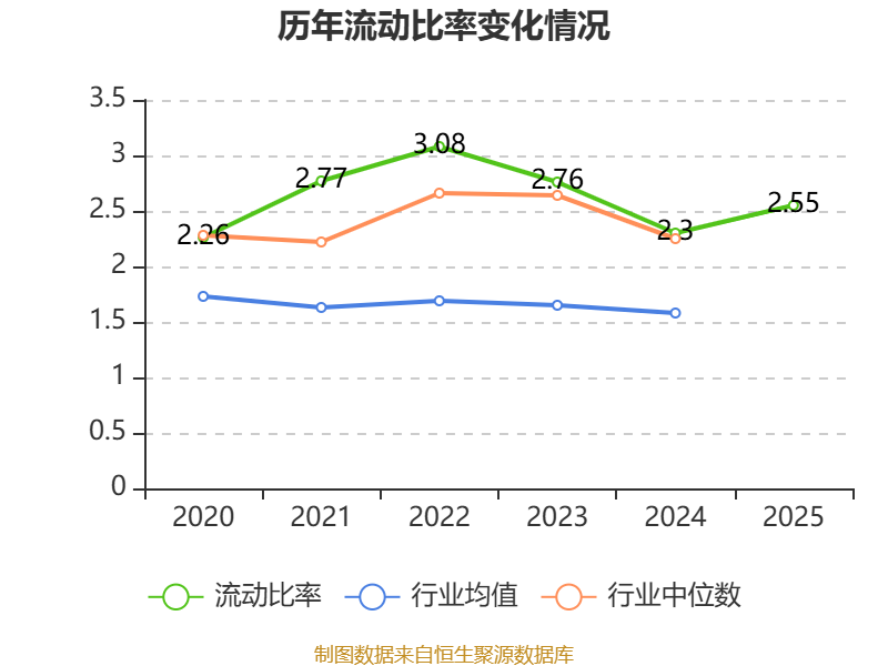 2025年,公司流动比率为2.55,速动比率为2.32。
