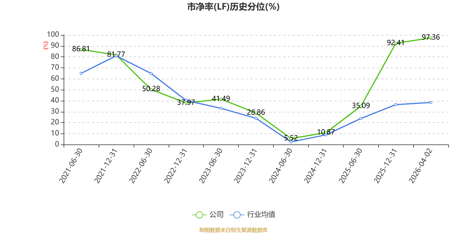 市盈率、市净率为负时,不显示当期分位数,会导致折线图中断。