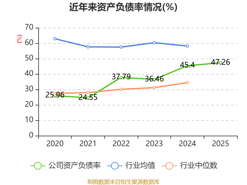 负债重大变化方面,截至2025年末,公司长期借款较上年末增加54.02%,占公司总资产比重上升3.69个百分点;短期借款较上年末减少73.16%,占公司总资产比重下降1.37个百分点;应付票据及应付账款较上年末增加16.33%,占公司总资产比重上升1.26个百分点;其他应付款(含利息和股利)较上年末减少81.1%,占公司总资产比重下降1.05个百分点。