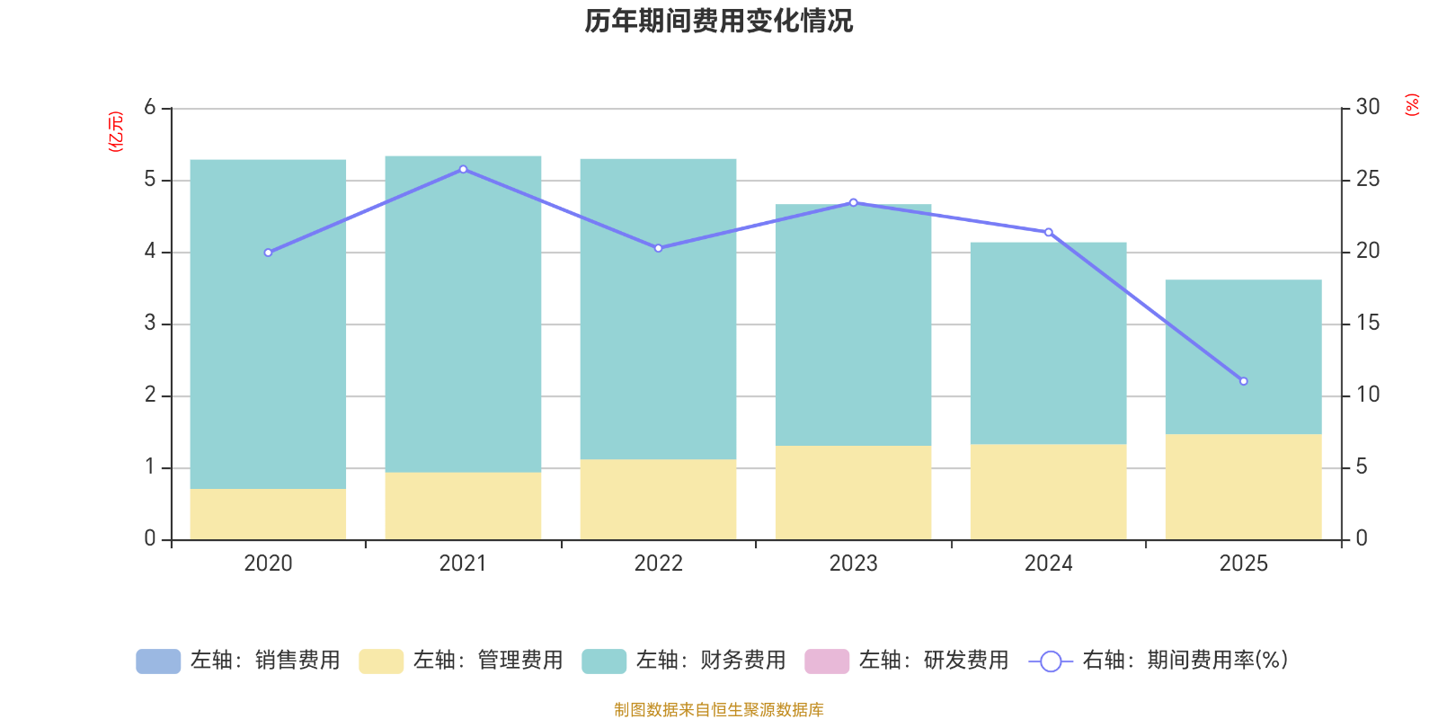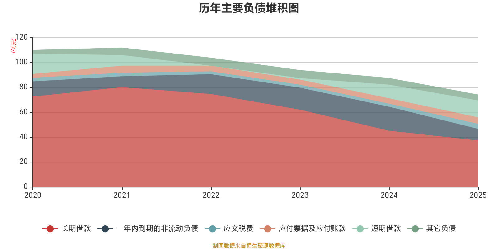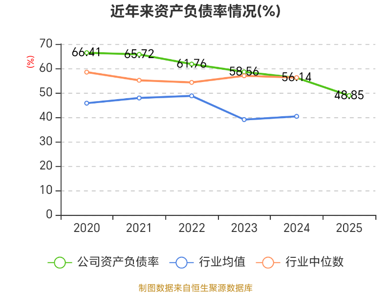 负债重大变化方面,截至2025年末,公司一年内到期的非流动负债较上年末减少51.73%,占公司总资产比重下降6.22个百分点;长期借款较上年末减少17.42%,占公司总资产比重下降4.41个百分点;短期借款较上年末增加23.54%,占公司总资产比重上升1.9个百分点;应交税费较上年末增加65.39%,占公司总资产比重上升1.1个百分点。