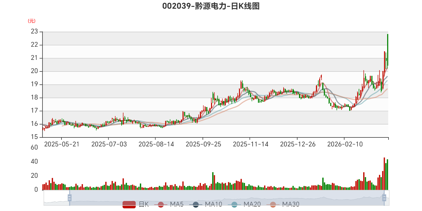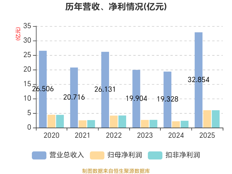 中证智能财讯黔源电力(002039)4月3日披露2025年年度报告。2025年,公司实现营业总收入32.85亿元,同比增长69.98%;归母净利润6亿元,同比增长175.02%;扣非净利润5.98亿元,同比增长153.16%;经营活动产生的现金流量净额为24.34亿元,同比增长93.63%;报告期内,黔源电力基本每股收益为1.4036元,加权平均净资产收益率为14.34%。公司2025年度分配预案为:拟向全体股东每10股派现3.9元(含税)。