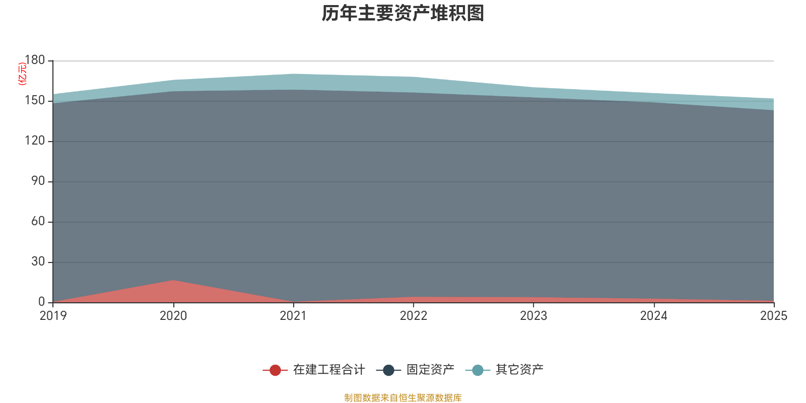 资产重大变化方面,截至2025年末,公司在建工程合计较上年末减少57.69%,占公司总资产比重下降0.96个百分点;货币资金较上年末增加76.56%,占公司总资产比重上升0.9个百分点;固定资产较上年末减少2.96%,占公司总资产比重下降0.36个百分点;应收票据及应收账款较上年末增加30.98%,占公司总资产比重上升0.24个百分点。
