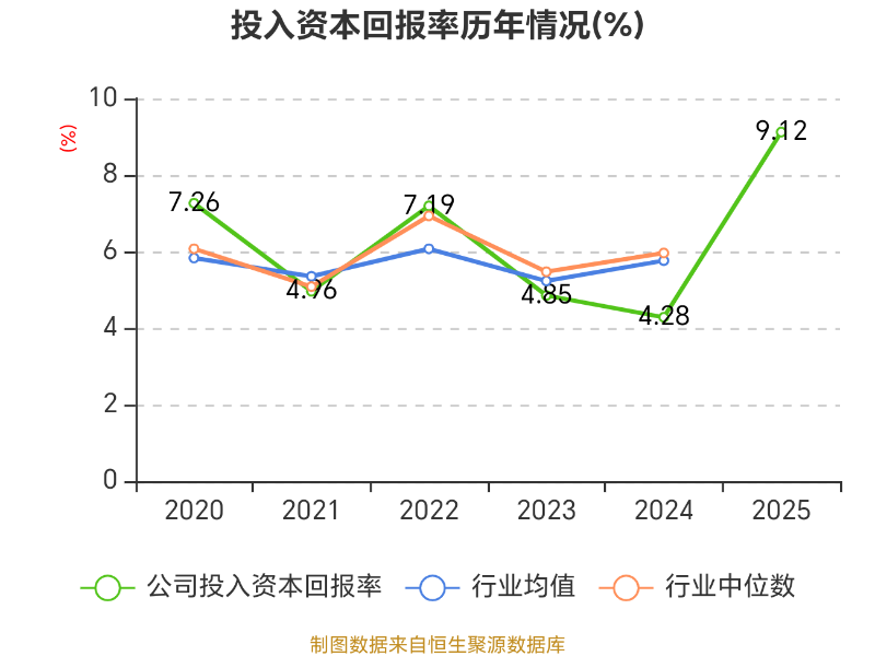 数据显示,2025年公司加权平均净资产收益率为14.34%,较上年同期上升8.69个百分点。公司2025年投入资本回报率为9.12%,较上年同期上升4.84个百分点。