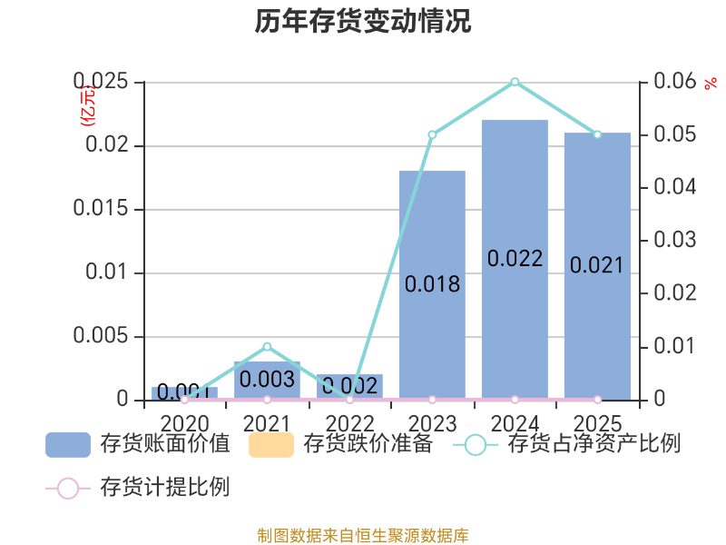 从存货变动来看,截至2025年末,公司存货账面价值为209.74万元,占净资产的0.05%,较上年末减少13.12万元。公司本期没有计提存货跌价准备。