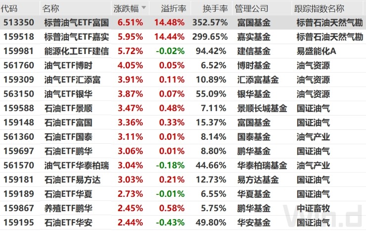 【导读】油气相关ETF集体走强,最高涨超6.5%