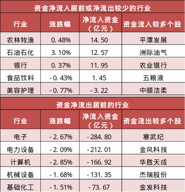 【2日资金路线图】两市主力资金净流出超500亿元 农林牧渔等行业实现净流入