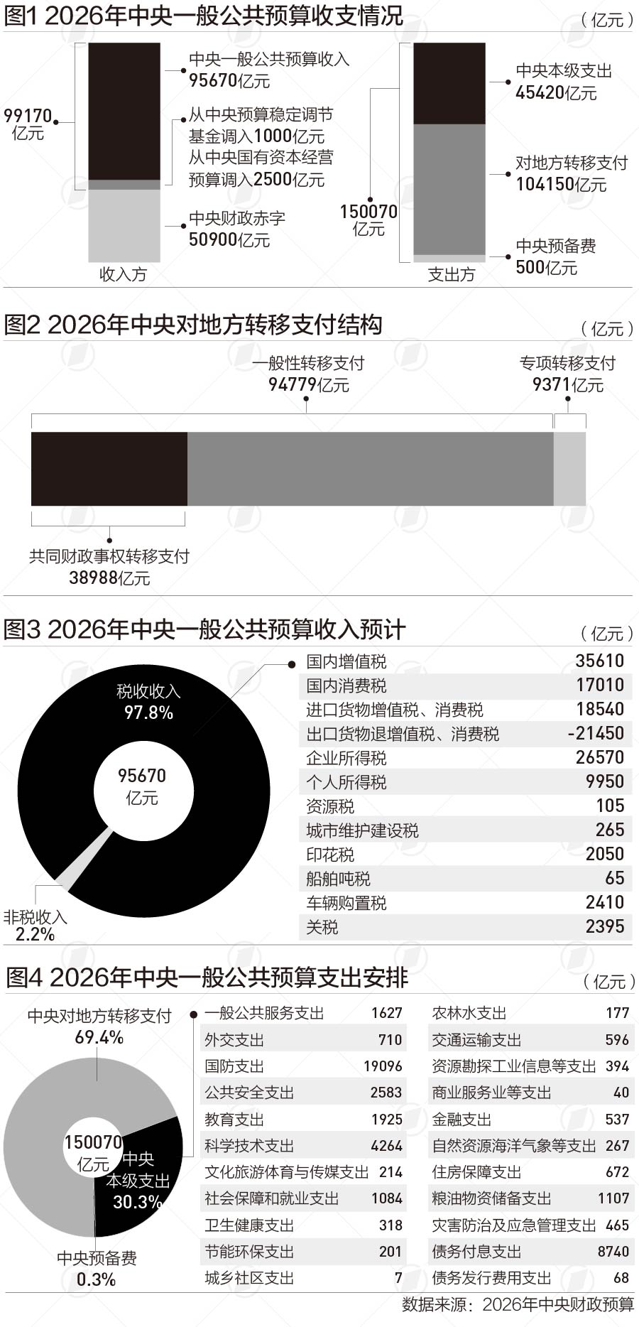 随着财政部近期披露2026年中央财政预算,今年中央财政约15万亿元一般公共预算收支细账明晰;中央财政15万亿元资金流向进一步明确。
