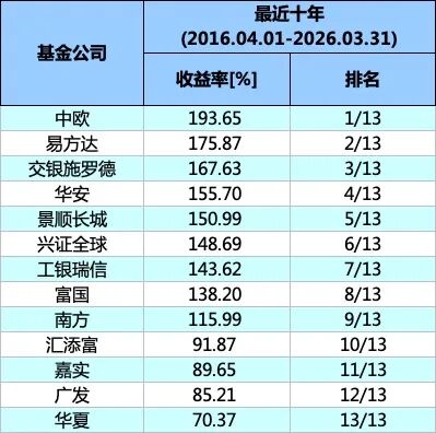 过去10年,A股市场完成了一轮从剧烈波动到稳健发展的蜕变,一批基金公司抓住机会取得了不错的业绩。