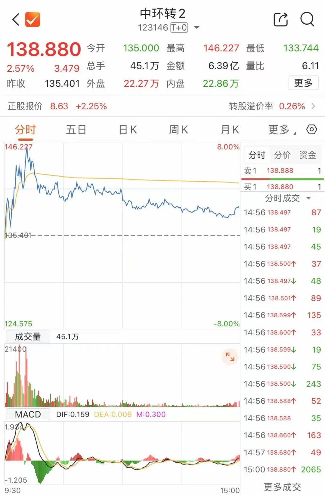 4月3日,是中环转2的最后交易日。中环转2 4月2日收盘价为138.88元/张,如果投资者不及时交易或转股而被强制赎回,可能亏损近27%。此前,众和转债部分持有者就因未及时操作导致亏损超26%。