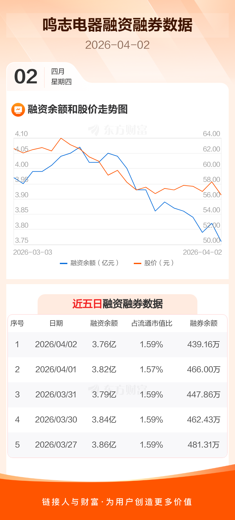 交易所最新数据显示,鸣志电器于2026年4月2日获融资买入1218.85万元,融资偿还1804.75万元,当日融资净偿还585.9万元。目前,该股融资余额3.76亿,占流通市值比例为1.59%。