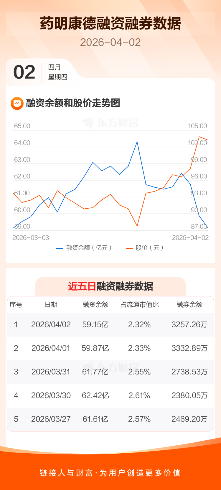 交易所最新数据显示,药明康德于2026年4月2日获融资买入4.18亿元,融资偿还4.91亿元,当日融资净偿还7242.93万元。目前,该股融资余额59.15亿,占流通市值比例为2.32%。