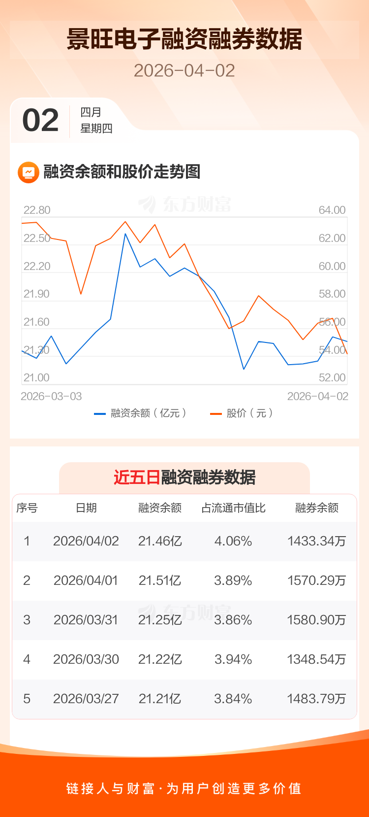 交易所最新数据显示,景旺电子于2026年4月2日获融资买入9186.08万元,融资偿还9773.62万元,当日融资净偿还587.54万元。目前,该股融资余额21.46亿,占流通市值比例为4.06%。