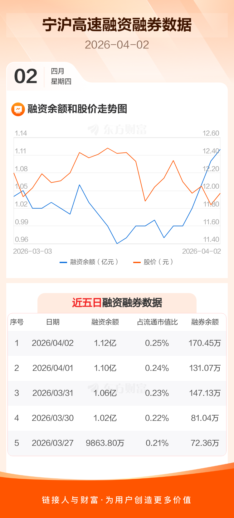 交易所最新数据显示,宁沪高速于2026年4月2日获融资买入1618.33万元,融资偿还1391.02万元,当日融资净买入227.31万元。目前,该股融资余额1.12亿,占流通市值比例为0.25%。