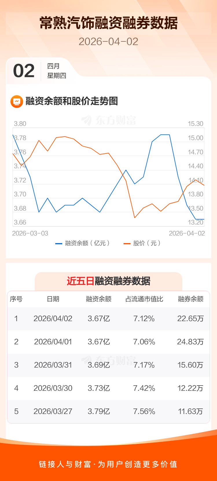 交易所最新数据显示,常熟汽饰于2026年4月2日获融资买入259.55万元,融资偿还277.91万元,当日融资净偿还18.36万元。目前,该股融资余额3.67亿,占流通市值比例为7.12%。