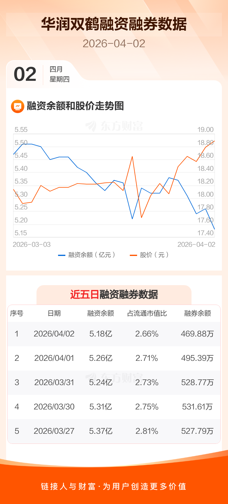 交易所最新数据显示,华润双鹤于2026年4月2日获融资买入2075.65万元,融资偿还2888.69万元,当日融资净偿还813.04万元。目前,该股融资余额5.18亿,占流通市值比例为2.66%。