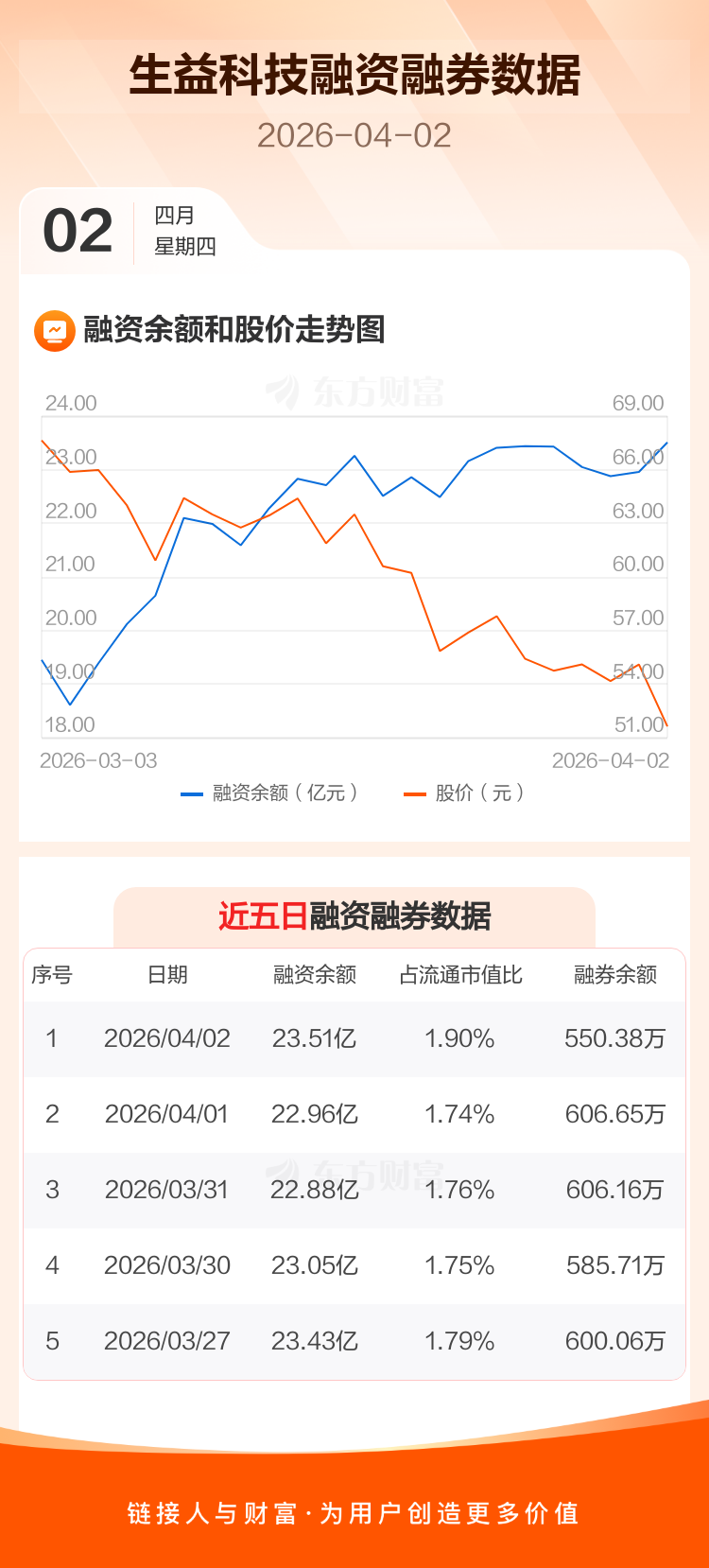 交易所最新数据显示,生益科技于2026年4月2日获融资买入2.16亿元,融资偿还1.61亿元,当日融资净买入5512.37万元。目前,该股融资余额23.51亿,占流通市值比例为1.90%。