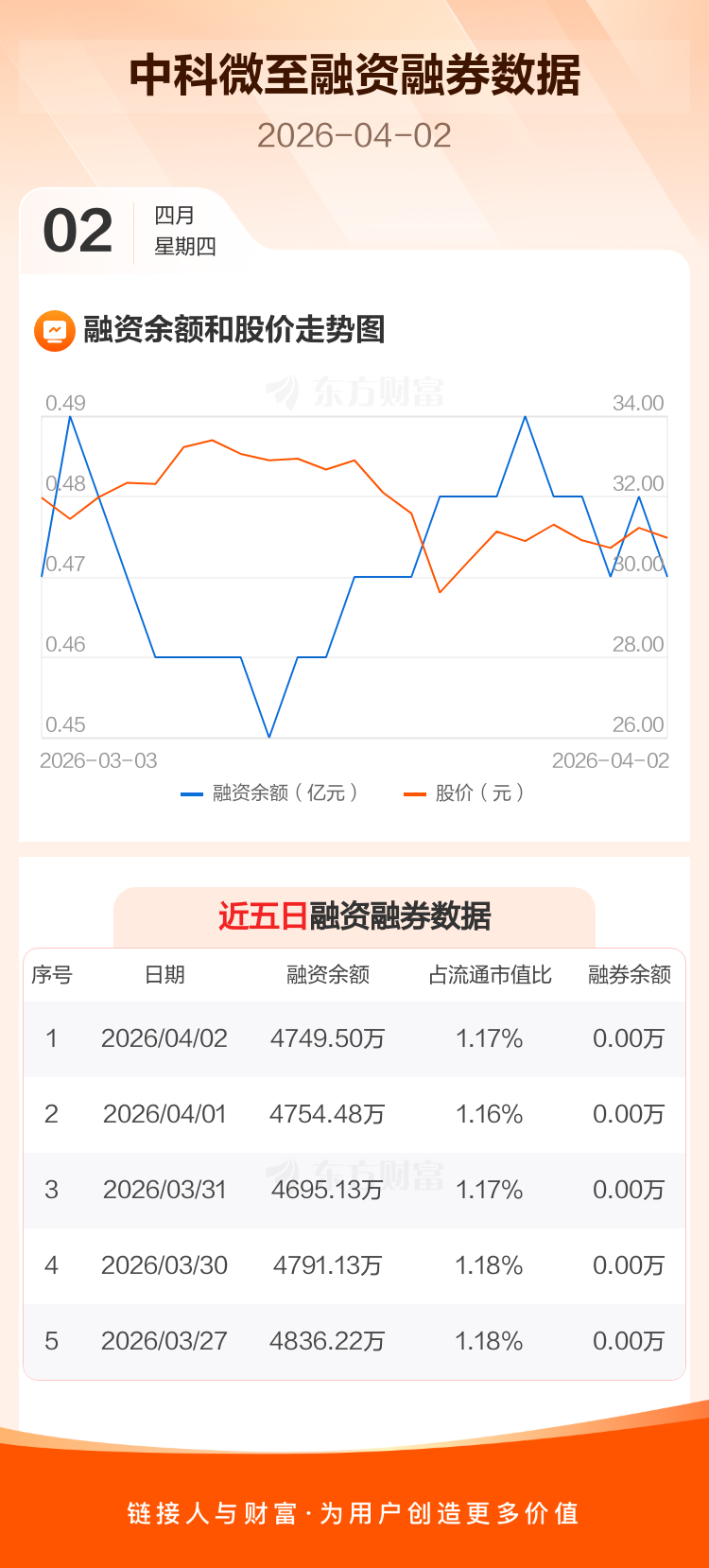 中科微至:融资净偿还4.97万元,融资余额4749.5万元