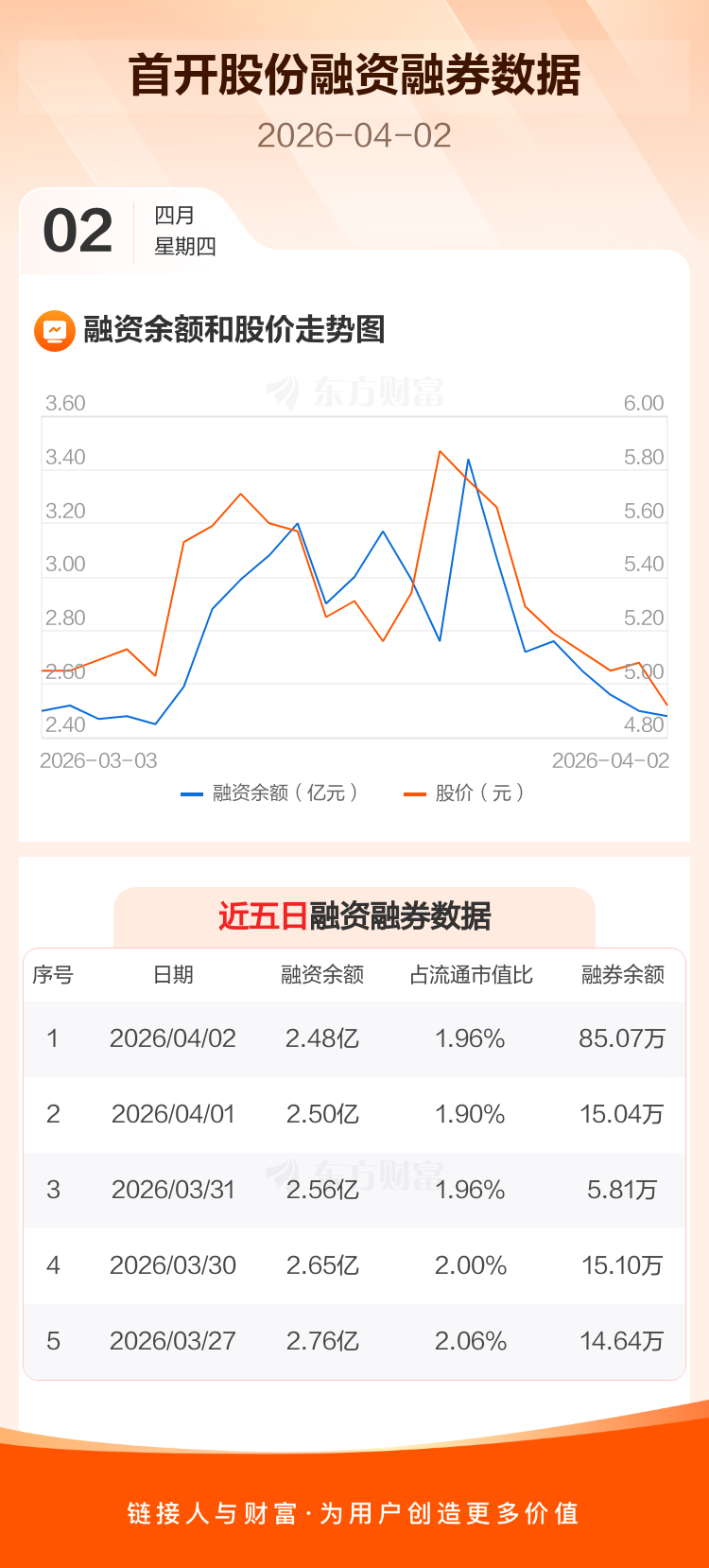 交易所最新数据显示,首开股份于2026年4月2日获融资买入1156.54万元,融资偿还1285.13万元,当日融资净偿还128.59万元。目前,该股融资余额2.48亿,占流通市值比例为1.96%。