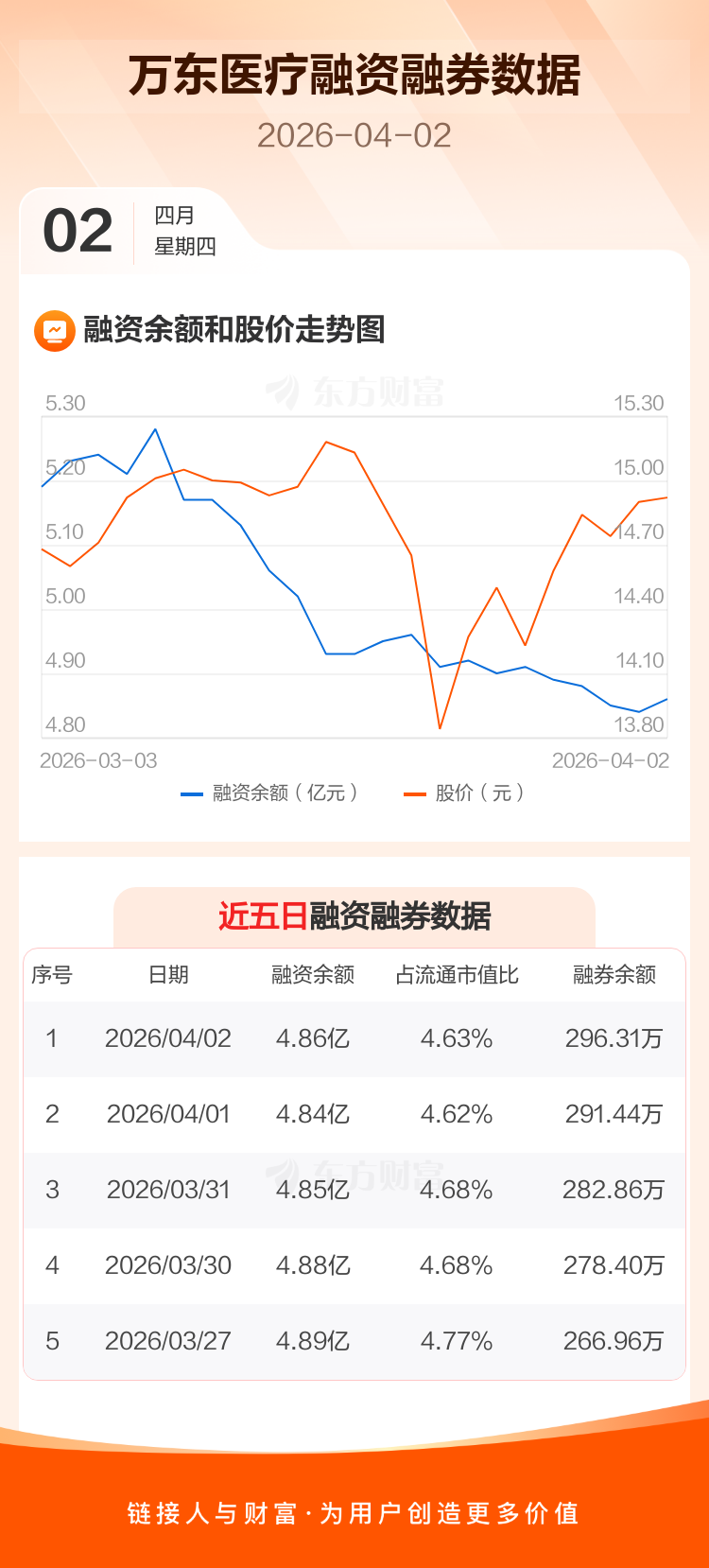 交易所最新数据显示,万东医疗于2026年4月2日获融资买入558.37万元,融资偿还322.54万元,当日融资净买入235.83万元。目前,该股融资余额4.86亿,占流通市值比例为4.63%。