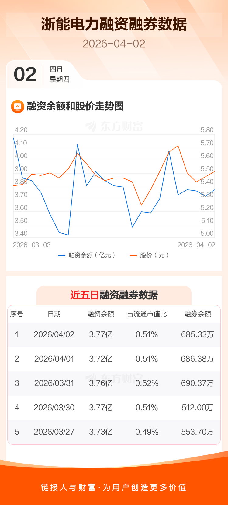 交易所最新数据显示,浙能电力于2026年4月2日获融资买入3376.50万元,融资偿还2876.74万元,当日融资净买入499.76万元。目前,该股融资余额3.77亿,占流通市值比例为0.51%。