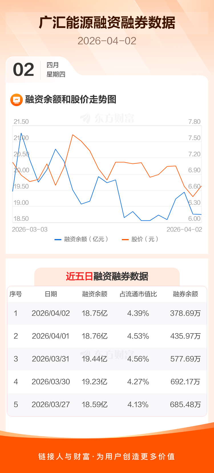 交易所最新数据显示,广汇能源于2026年4月2日获融资买入1.47亿元,融资偿还1.48亿元,当日融资净偿还105.99万元。目前,该股融资余额18.75亿,占流通市值比例为4.39%。