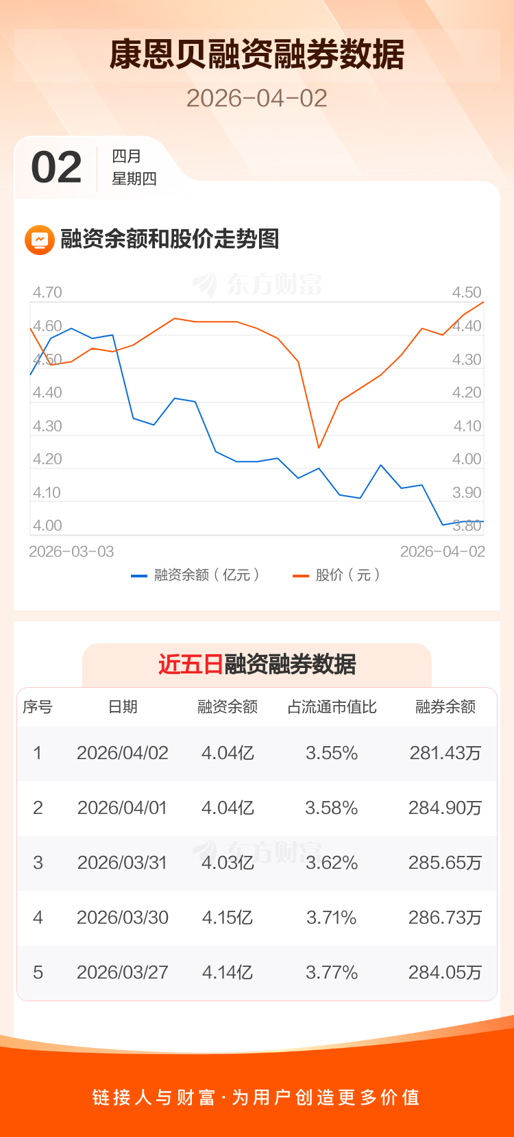 交易所最新数据显示,康恩贝于2026年4月2日获融资买入1565.99万元,融资偿还1604.04万元,当日融资净偿还38.05万元。目前,该股融资余额4.04亿,占流通市值比例为3.55%。