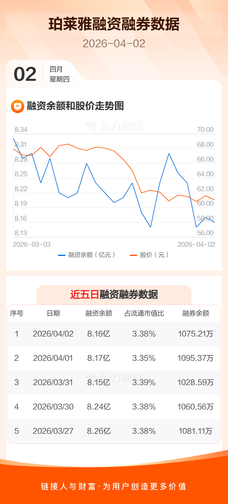 交易所最新数据显示,珀莱雅于2026年4月2日获融资买入791.70万元,融资偿还878.94万元,当日融资净偿还87.24万元。目前,该股融资余额8.16亿,占流通市值比例为3.38%。