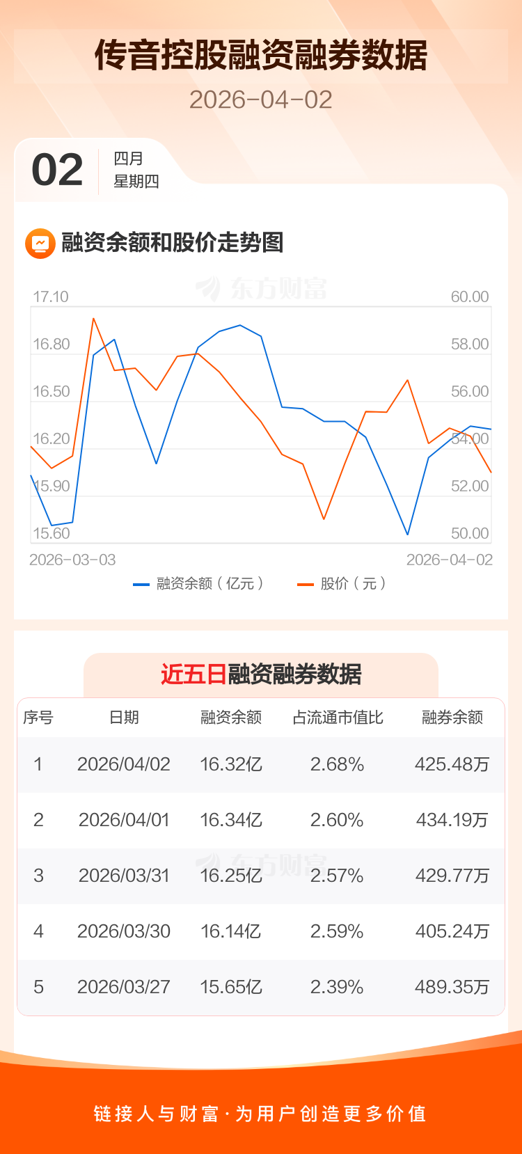交易所最新数据显示,传音控股于2026年4月2日获融资买入2996.55万元,融资偿还3175.80万元,当日融资净偿还179.25万元。目前,该股融资余额16.32亿,占流通市值比例为2.68%。